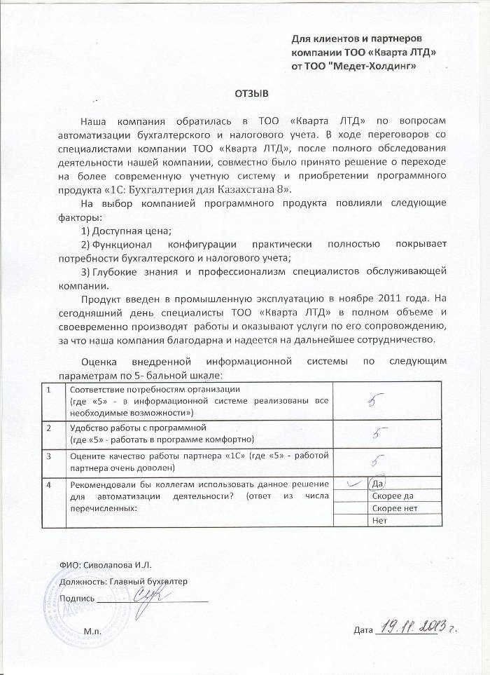 Клиент: ТОО "Медет - Холдинг"