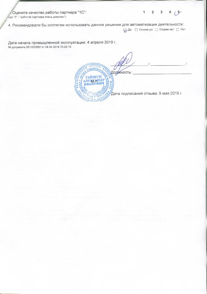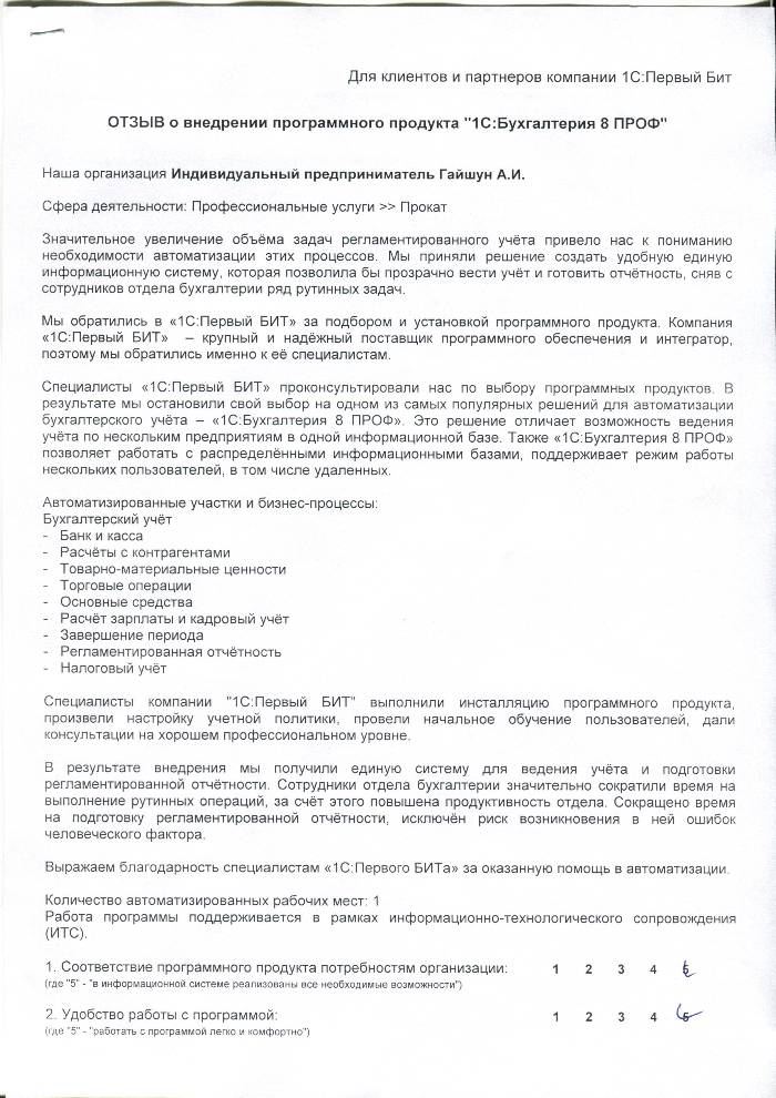 Внедренное решение: Автоматизация учета на базе «1С:Бухгалтерия 8 для Казахстана» в ИП Гайшун А.И.
