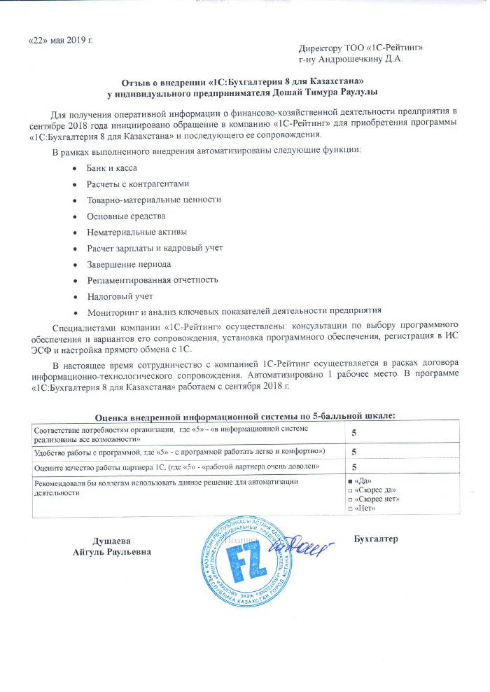 Внедренное решение: Внедрение "1С:Бухгалтерия 8 для Казахстана" в ИП "FRUITZONE"