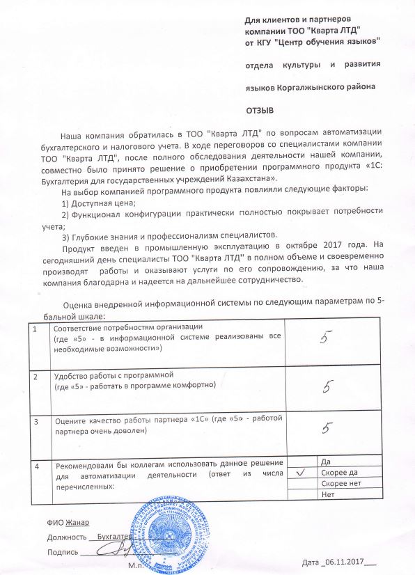 Клиент: Коммунальное государственное учреждение "Центр обучения языков" отдела культуры и развития языков Коргалжынского района