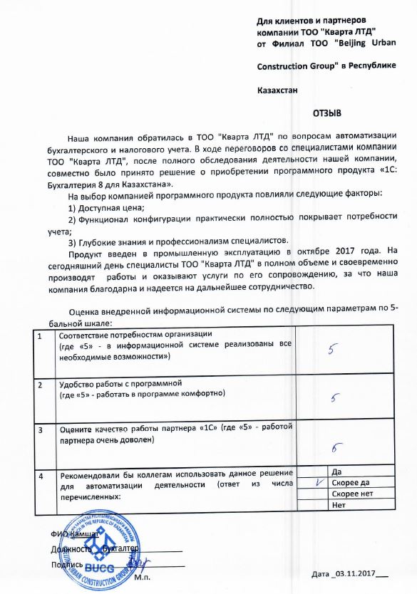 Клиент: Филиал ТОО "Beijing Urban Construction Group" в Республике Казахстан