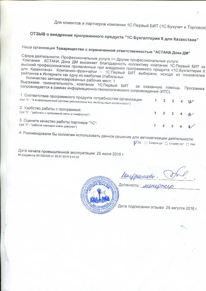 Клиент: Товарищество с ограниченной ответственностью "АСТАНА Дока ДМ"