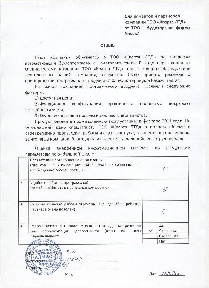Клиент: ТОО Аудиторская фирма Алмас