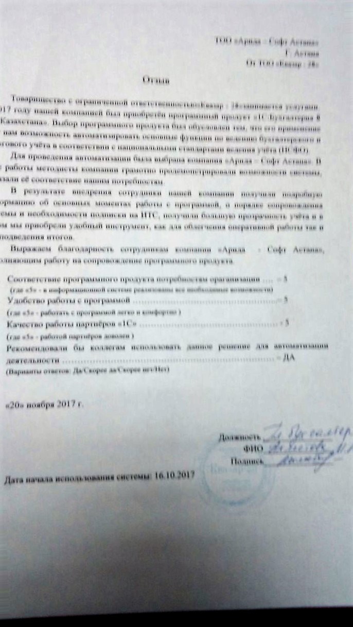 Внедренное решение: Внедрение программного продукта "1С:Бухгалтерия 8 для Казахстана" в компании, занимающейся услугами