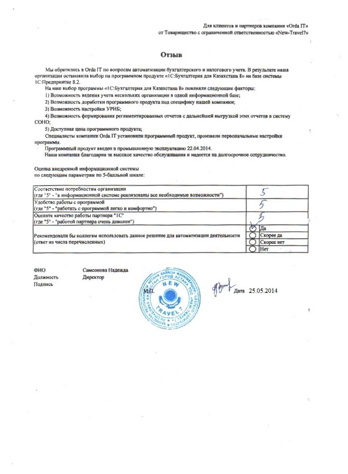 Внедренное решение: ТОО "New Travel" автоматизировал бухгалтерский и налоговый учёт на базе ПП "1С:Бухгалтерия 8 для Казахстана"