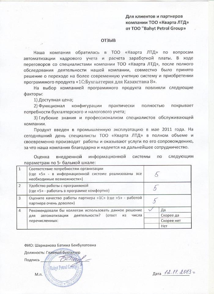 Внедренное решение: Автоматизация бухгалтерского и налогового учета компании, торгующей нефтепродуктами.