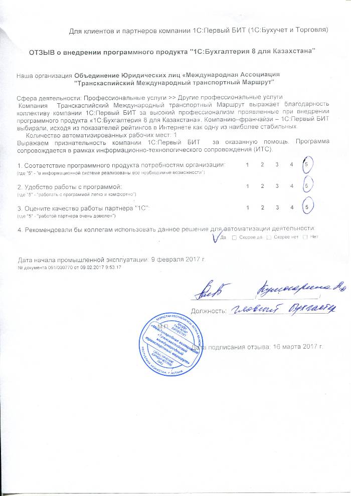 Автор внедрения: 1С:Первый Бит, Астана