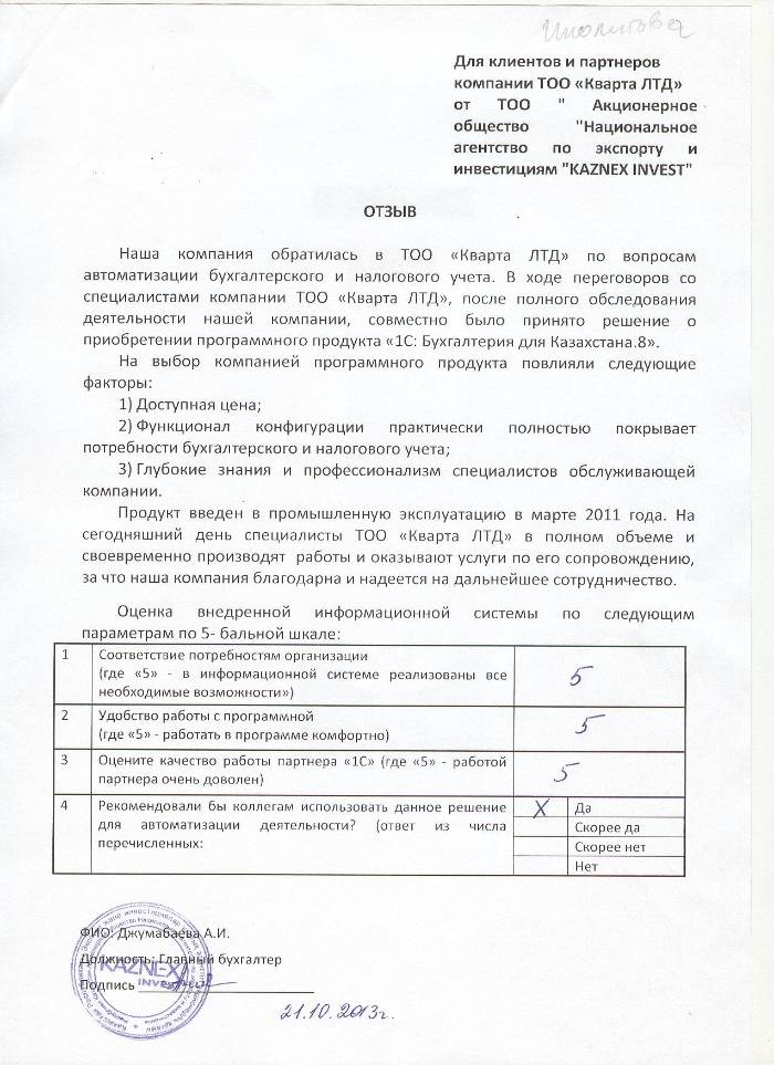 Клиент: Акционерное общество "Национальное агентство по экспорту и инвестициям "KAZNEХ INVEST"