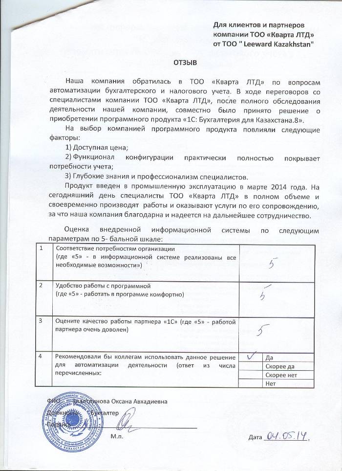 Клиент: ТОО Leeward Kazakhstan (Ливард Казахстан)