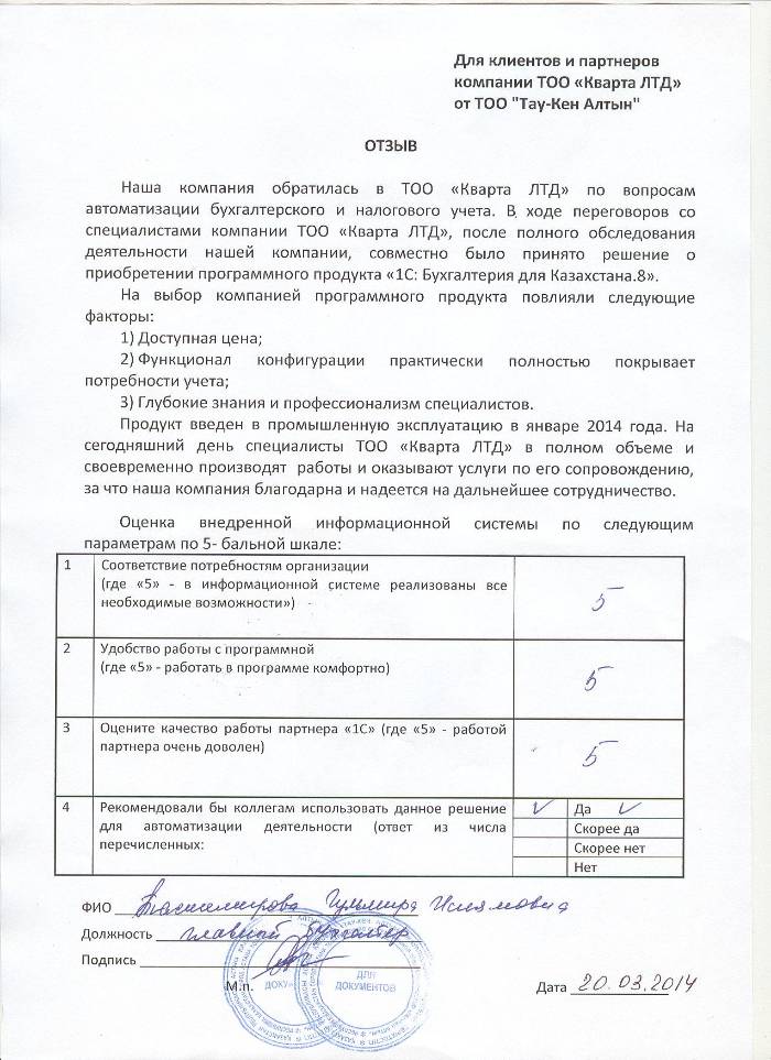 Отзыв клиента на внедренное решение