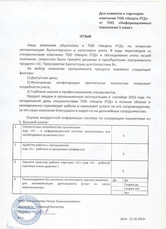 Клиент: ТОО "Информационные технологии 5 плюс"