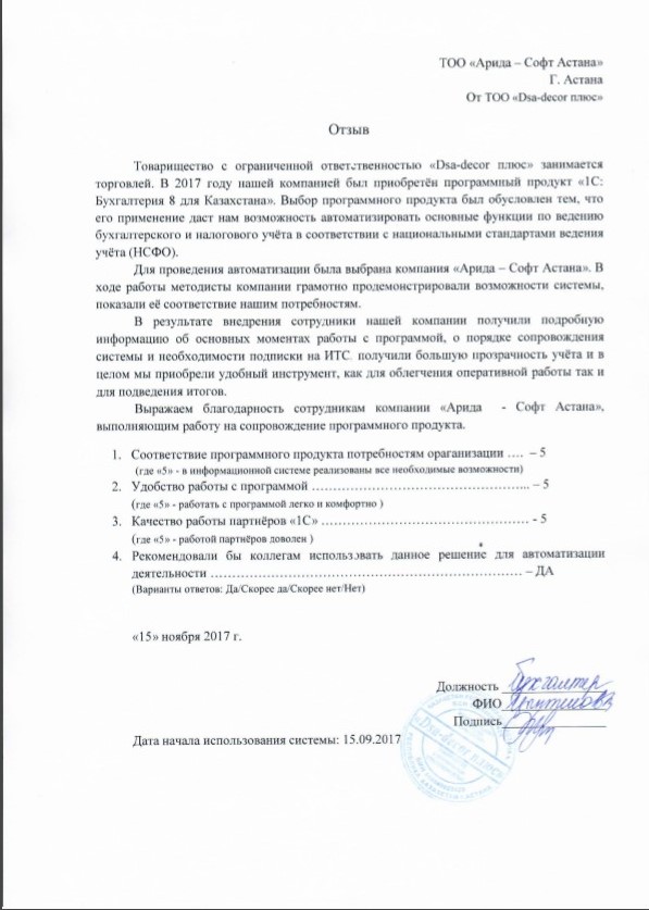 Внедренное решение: Внедрение программного продукта "1С:Бухгалтерия 8 для Казахстана" в компании, занимающейся торговлей