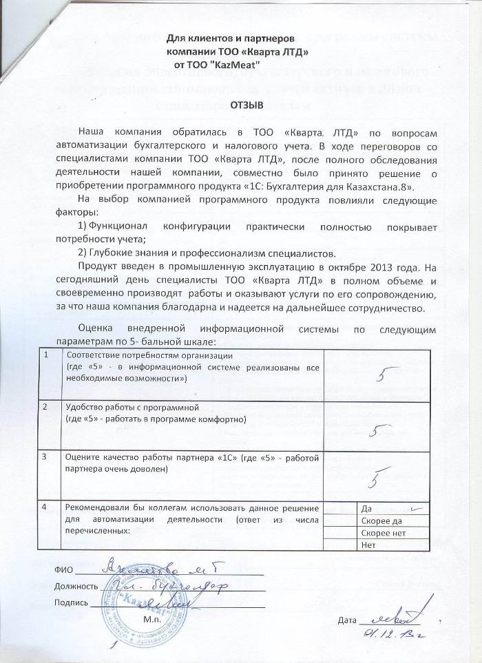 Отзыв клиента на внедренное решение