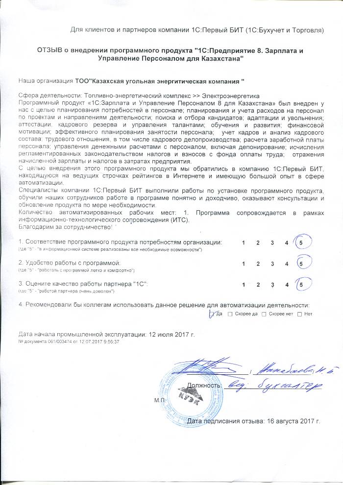 Внедренное решение: Автоматизация кадрового учета на базе программного продукта "1С:Предприятие 8. Зарплата и Управление Персоналом для Казахстана"