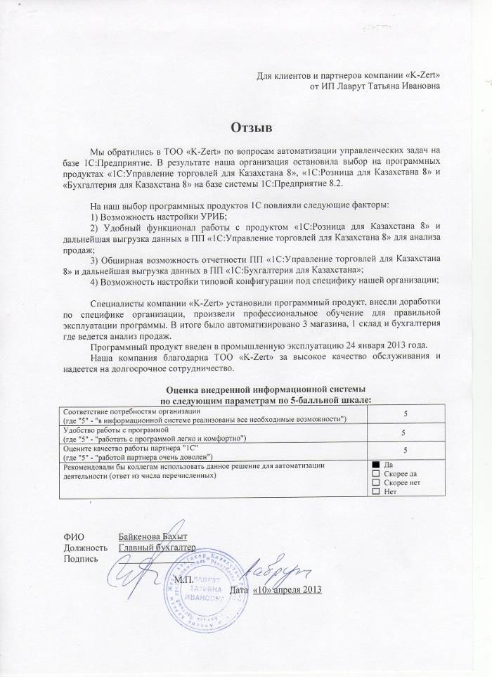 Внедренное решение: ИП Лаврут Татьяны Ивановны автоматизировал оперативные задачи и управленческий учёт на базе ПП "1С:Розница 8 для Казахстана"