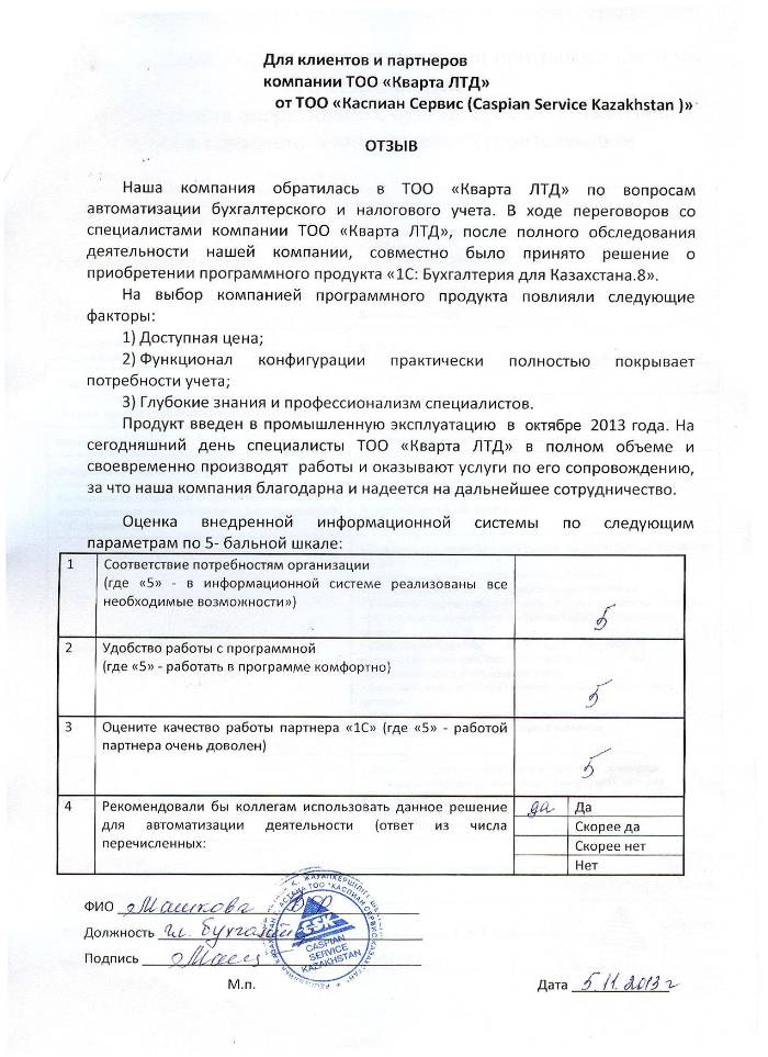 Клиент: Каспиан Сервис (Caspian Serviсe Kazakhstan )