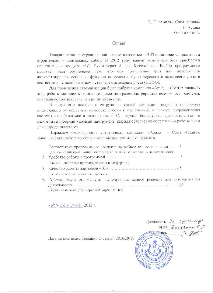 Внедренное решение: Внедрение программного продукта "1С:Бухгалтерия 8 для Казахстана" в компании, оказывающей строительно-монтажные работы