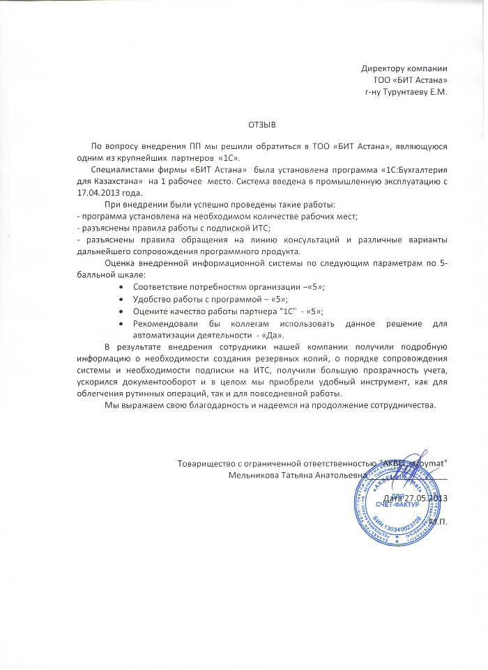 Внедренное решение: Автоматизация бухгалтерского учета в ТОО "AKBEL stroymat" на базе программного продукта "1С:Предприятие 8.Бухгалтерия для Казахстана"