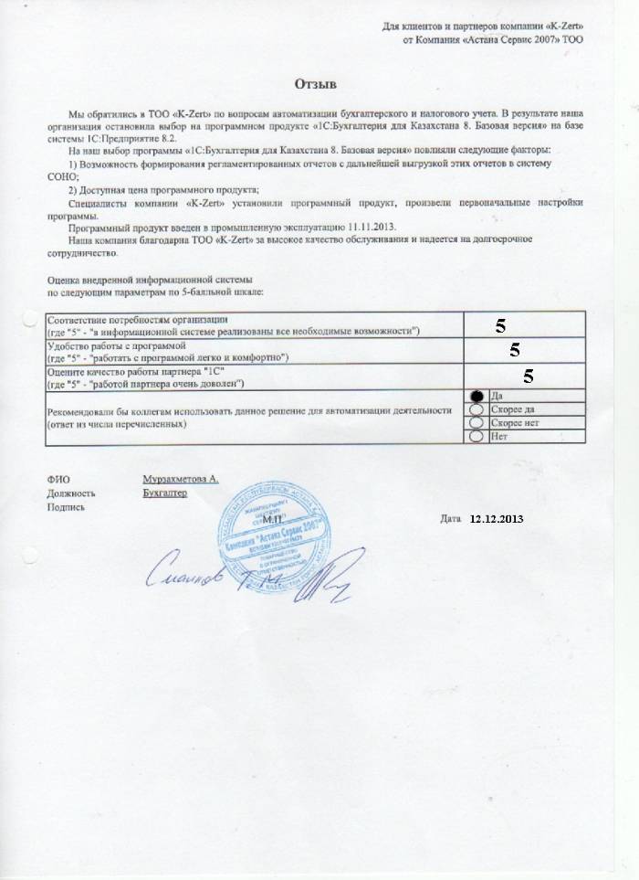 Внедренное решение: ТОО "Компания Астана Сервис 2007" автоматизировал бухгалтерский и налоговый учёт на базе ПП "1С:Бухгалтерия 8 для Казахстана. Базовая версия"