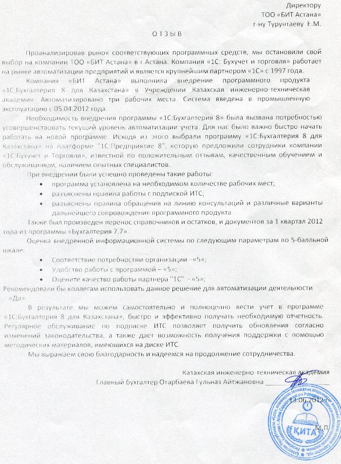 Внедренное решение: Автоматизация бухгалтерского учета в Учреждении "Казахская инженерно-техническая академия" на базе программного продукта "1С:Бухгалтерия 8 для Казахстана" (3 рабочих места)