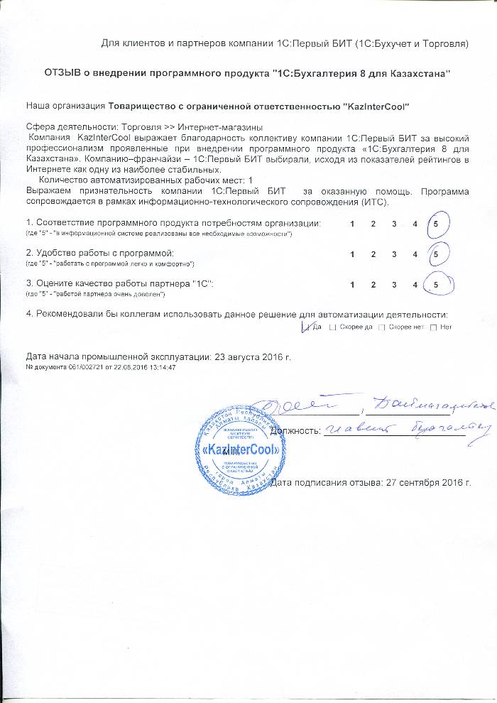 Клиент: Товарищество с ограниченной ответственностью "KazInterCool"