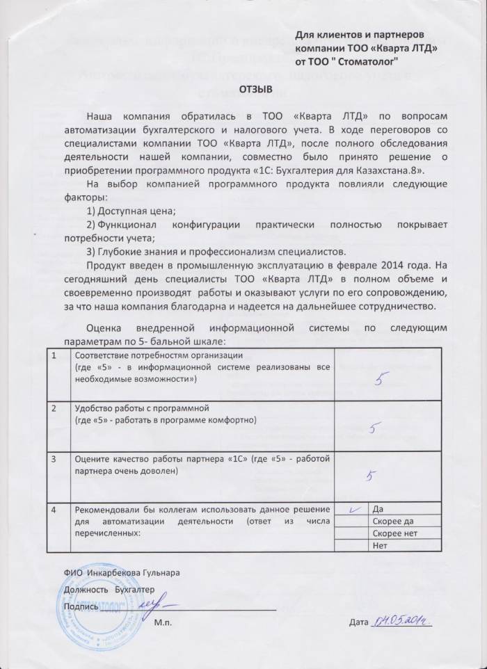 Внедренное решение: Автоматизация бухгалтерского, налогового учета в стоматологии