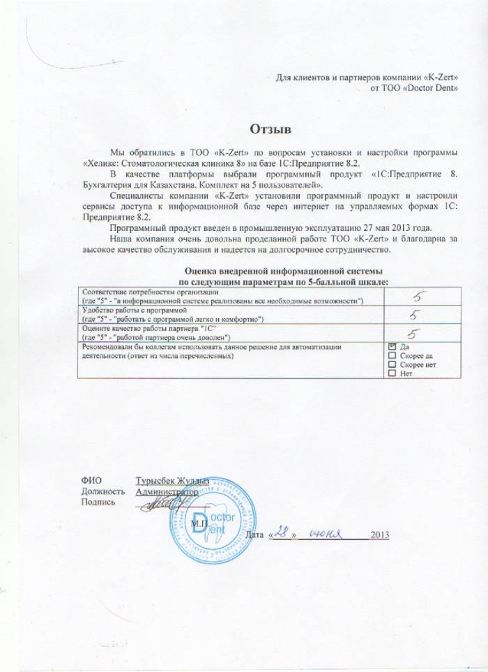 Клиент: ТОО "Doctor Dent"