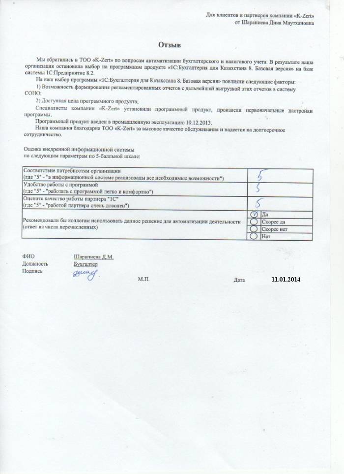 Отзыв клиента на внедренное решение